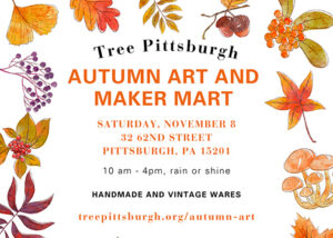 Tree Pittsburgh is excited to announce the return of our Autumn Art and Maker Mart! Vendors from around Pittsburgh will showcase their handmade and vintage wares for sale – perfect for early holiday shopping. The event will also have coffee, tea, baked goods, brunch beverages (alcoholic and n/a) and homemade pierogies available for purchase.